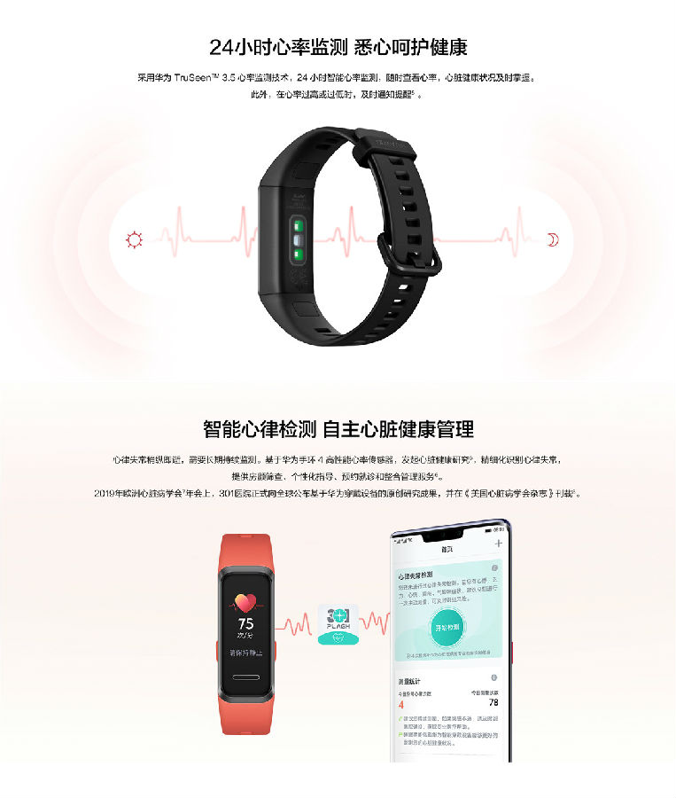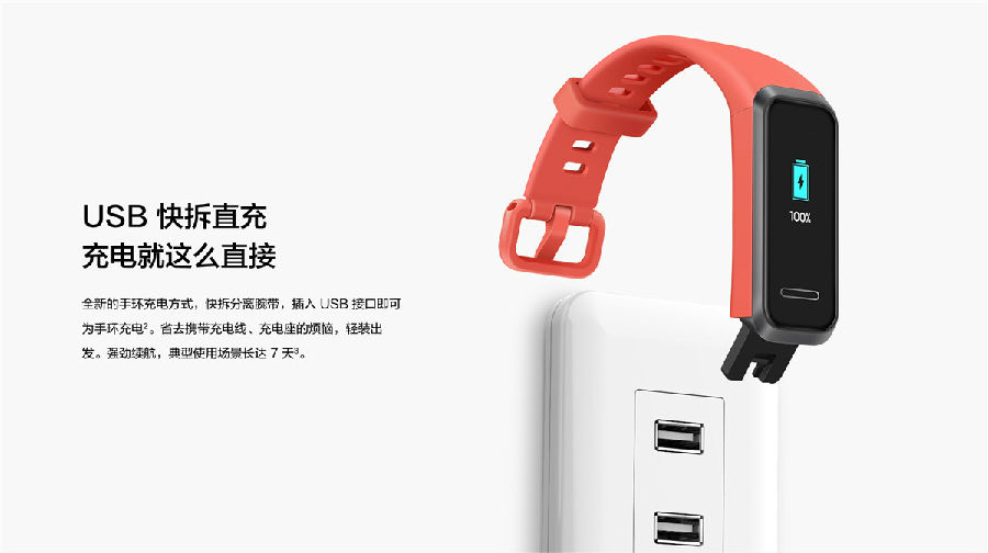 華為手環(huán)4(曜石黑)炫彩表盤 USB即插即充 健康管理 智能運(yùn)動(dòng)手環(huán)
