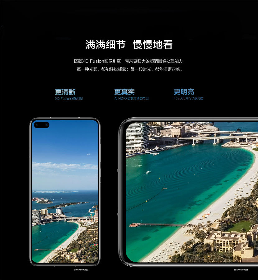 后置攝像頭  :   超感知徠卡四攝:5000萬像素超感知攝像頭(廣角, f/1.9光圈,OIS光學防抖)+ 4000萬像素電影攝像頭(超廣角,f/1.8光圈) + 1200萬像素超感光長焦攝像頭(f/3.4 光圈,OIS光學防抖) + 3D深感攝像頭