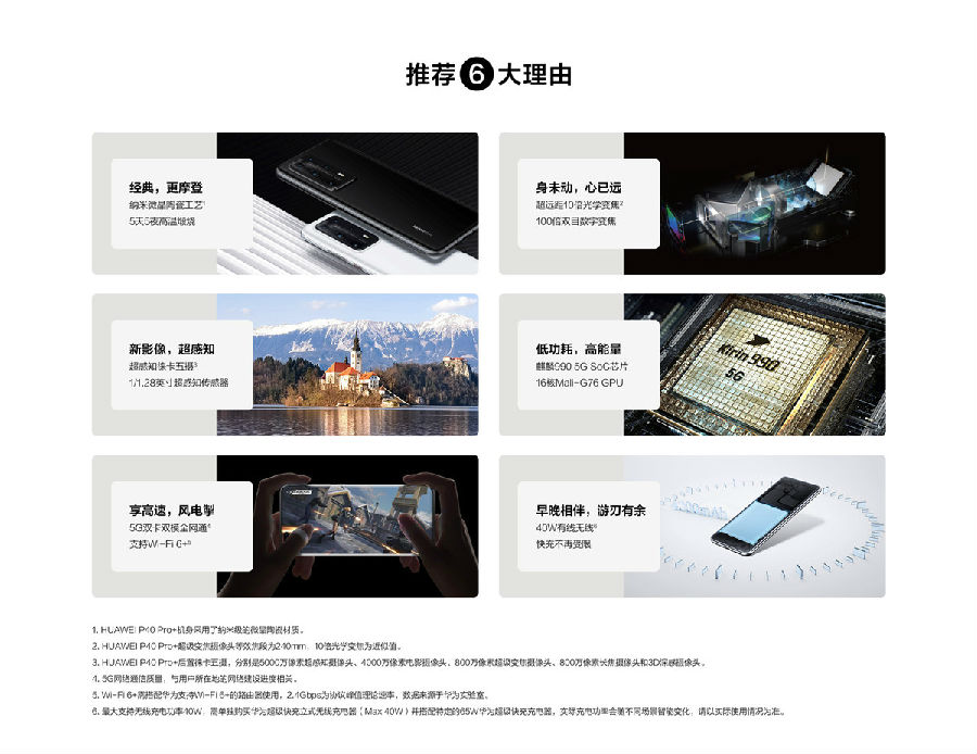 后置攝像頭  :   超感知徠卡五攝:5000萬像素超感知攝像頭(廣角, f/1.9光圈,OIS光學(xué)防抖) + 4000萬像素電影攝像頭(超廣角,f/1.8光圈) + 800萬像素超級變焦攝像頭(10倍光學(xué)變焦,f/4.4光圈,OIS光學(xué)防抖) + 800萬像素長焦攝像頭(3倍光學(xué)變焦,f/2.4光圈,OIS光學(xué)防抖) + 3D深感攝像頭